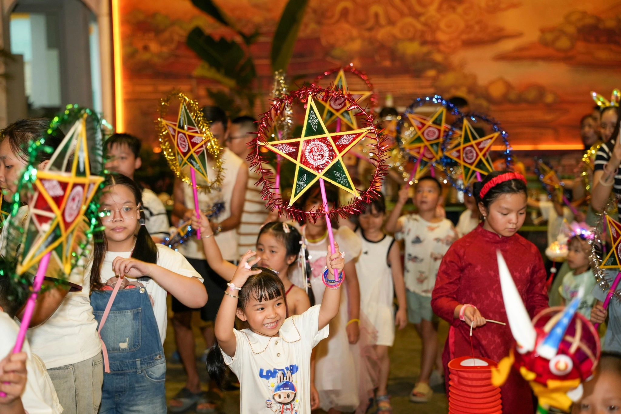 Từ những tiếng trống lân giòn giã vang lên mở màn, đến giây phút cả gia đình cùng rước đèn, phá cỗ, trông trăng, mọi khoảnh khắc đều ngập tràn niềm hân hoan. Các bé được thỏa sức sáng tạo trong workshop nặn tò he, vẽ mặt nạ giấy bồi cùng nghệ nhân dân gian, thưởng thức múa rối nước truyền thống, và dạo bước trong khu trưng bày Trung thu cổ truyền – nơi tái hiện hình ảnh của những mùa trăng xưa.